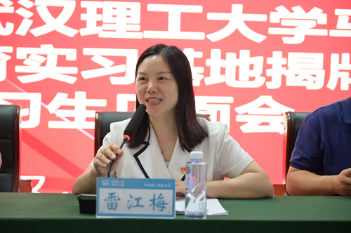 随后,雷江梅副经理介绍了公司思想政治教育本科专业的发展历史、取得成绩与专业特色,并语重心长地嘱托参加实习的同学要着重打好基础,为社会做出更大贡献。她表示公司和企业将依托新的人才联合培养基地共同为人才培养积极出力,并再次感谢中铁重工领导和相关部门为公司思想政治专业发展和人才培养的大力支持。