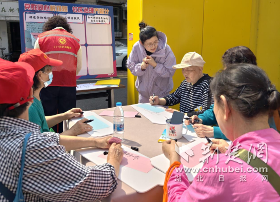 “练・思想解码”板块别出心裁,极具挑战性。在117社区的“党建引领聚合力 共解社区治理题”摊位,居民们抽取写有如“楼道杂物乱堆乱放”“如何调动居民加入社区文体团队”等社区常见问题的纸条后,纷纷在纸条上写下如制定党员“责任区包干”制度,实行党员“结对帮扶”清理计划,选举党员文化领航员,通过党组织协调资源、提供活动场地、设备支持等破解方法,大家集思广益,用党建思维为社区治理难题出谋划策。不一会儿,摊位后的“党群同心解难题 社区治理齐献计”背板上就贴满了妙计。