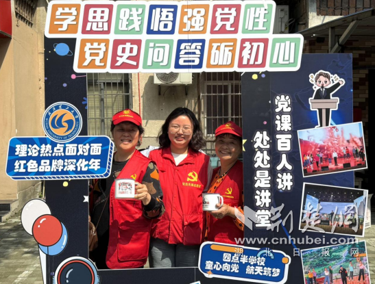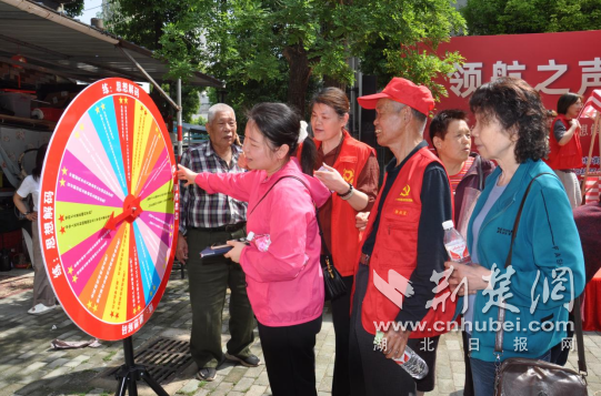 119社区的“党史大转盘”摊位前,一个直径约半米的巨型转盘格外引人注目。转盘表面被精心划分成16个扇形区域,每个区域都标注着不同难度的党史问题。“我先来试试手气!”青年党员小赵率先转动转盘,答出“中共七大确立毛泽东思想为指导思想”。紧接着,70多岁的老党员陈爷爷转到了“讲述老党员的红色故事”的区域。他饱含深情地讲述了邻居老周曾参加抗美援朝的故事,将大家带回了那段硝烟弥漫的岁月。“这个活动真好,既让年轻人学党史,也让我们这些老家伙有机会把过去的故事讲给大家听!”