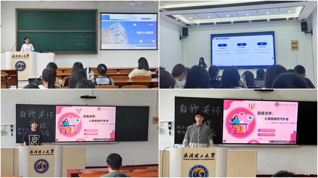 政治2302班详细介绍了自我关怀的概念。同学们积极分享自身经历,互相交流自我关怀在实际生活中的应用,可以通过写日记、冥想等方式释放压力,关注内心感受,从而保持心理健康。此次班会为同学们种下了一颗种子,希望他们在今后的学习生活中更好地关心爱护自己,学会聆听自己的心声,以更加积极的姿态迎接新的挑战。