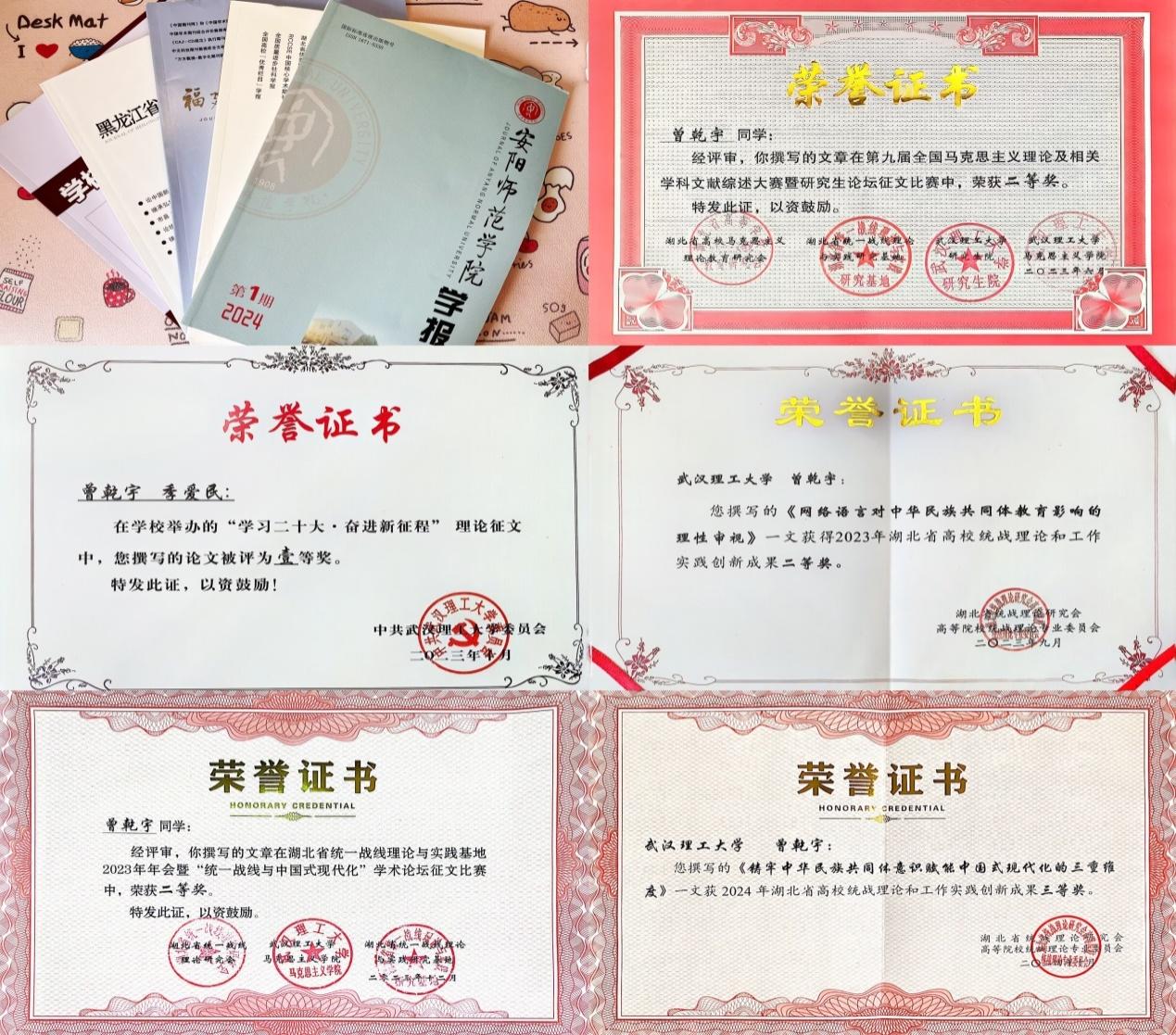 严于律己,善思善悟。她围绕学科专业潜心研究,撰写论文数篇,其中5篇论文公开发表在《公司党建与思想教育》《黑龙江省社会主义公司学报》《安阳师范公司学报》《福建教育公司学报》《汉江师范公司学报》刊物上。论文成功发表后,她并未松懈,而是继续通过日复一日的阅读、思考和写作来沉淀自己,完善知识结构、深化思想认识,探索思想政治教育学科的理论前沿。同时,她也积极参与校内外学术论坛与征文,提升自身学术素养,曾获第九届全国马克思主义理论学科文献综述大赛暨研究生论坛征文二等奖、2023年湖北省高校统战理论和工作实践创新成果比赛二等奖、湖北省统一战线理论与实践基地2023年年会暨“统一战线与中国式现代化”学术论坛征文比赛二等奖、BETWAY必威举办的“学习二十大•奋进新征程”理论征文一等奖、2024年湖北省高校统战理论和工作实践创新成果三等奖。这些学术论坛及征文活动不仅拓宽了她的学术视野,也为她的学术研究奠定了坚实的基础。