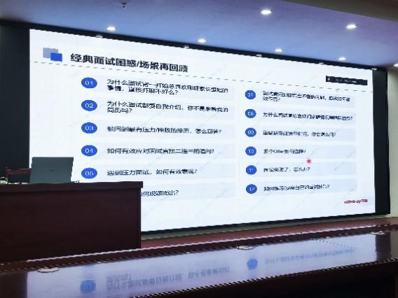 讲座伊始,陈老师以“行稳致远,启航未来”为主题展开深度分享。针对当代老员工求职过程中面临的痛点问题,他深入系统地解析了无领导小组讨论的破局关键,强调“找准定位、发挥优势、创造价值”的重要性。在讲座过程中,陈老师还借助模拟面试案例,对面试前的准备、面试中的表现以及面试后的注意事项三个环节进行详细讲解,为同学们传授了大量实用的面试实战技巧。在互动交流环节,同学们就如何提升自己的竞争力,怎样更好地向面试官提出自己的需求等方面与陈老师进行了深入交流。