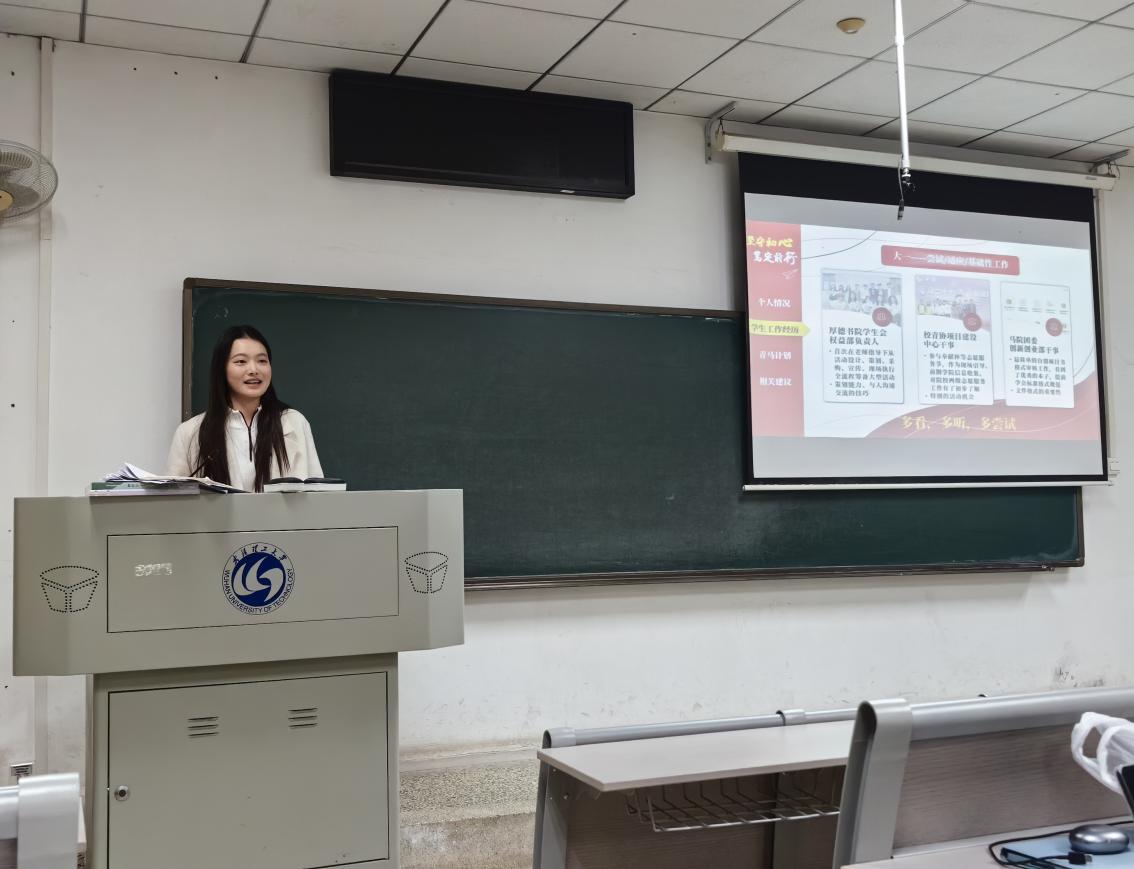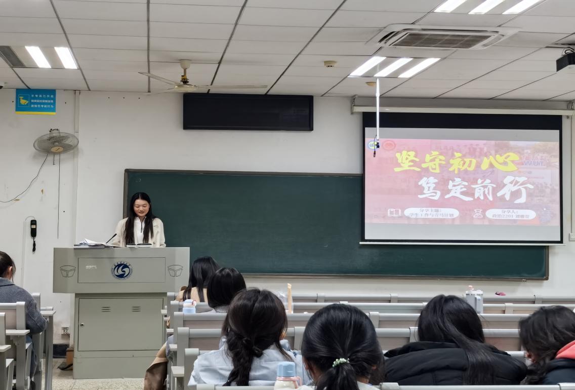 在此次经验分享会上,刘雅萱学姐以扎实的思政素养、丰富的实践经历为在场同学带来了实战方法论。刘雅萱学姐先向大家介绍了自己的个人情况、员工工作经历;再向同学们具体解释了青马计划的要求和流程,深入剖析了参与青马计划对个人思想淬炼、能力提升的重要价值;最后,刘雅萱学姐结合自身深耕学术的积累与员工工作经验,向同学们分享了精心整理的大学四年规划表,为同学们提供具体可行的成长建议,同时针对大家提出的各类疑问进行细致耐心地解答。