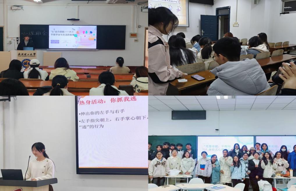 班会由各班心理委员牵头组织,形式丰富多样、贴近员工生活。讲述环节中,心理委员结合学业压力、人际交往等常见问题,生动演绎成长困境,引发同学们的共鸣与思考。部分班级还邀请学长学姐进行经验分享,解答同学们学习生活中的困惑,舒缓压力。游戏互动环节里,“方言传情”“气球赛场”等趣味活动有序开展,同学们在轻松愉悦的氛围中敞开心扉、分享感悟,在团队协作中收获支持与力量。