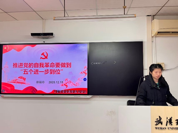 会议第三项,徐丽玲同志领学了深入推进党的自我革命需要做到“五个进一步到位”的重要性。她围绕“对党的自我革命认识进一步到位、党员干部增强党性进一步到位、权力规范运行进一步到位、从严监督执纪进一步到位、落实管党治党责任进一步到位”逐点解读,结合研究生党员群体特点,重点阐释了增强党性与科研诚信、学术道德的内在关联,强调要以自我革命精神筑牢思想防线,在科研创新中坚守学术底线,在集体生活中践行法治理念。